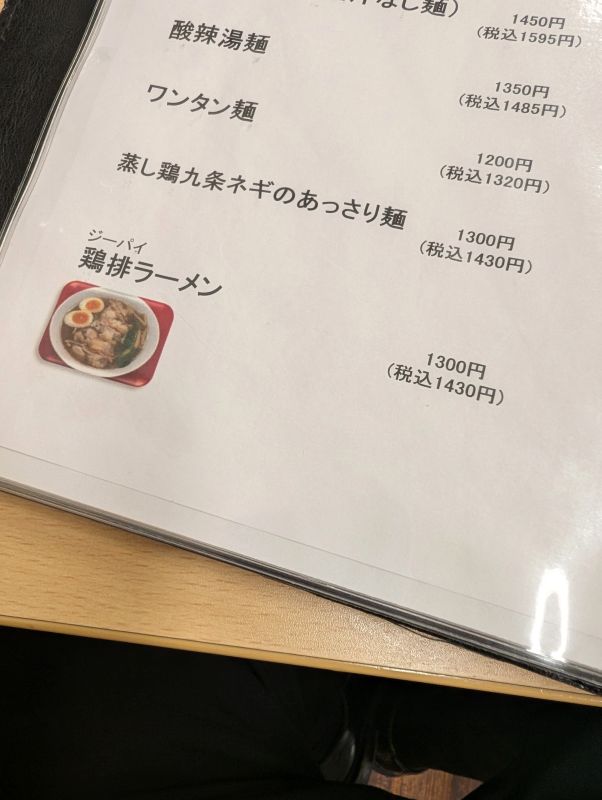 これは何!? 排骨麺(豚肉)は有名だけど、鶏排ラーメンは鶏肉!? さっぱりスープに太麺。鶏排はスナック菓子みたいで新鮮。スープが染みると少し味が変わります。