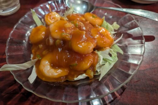 私は8人テーブルの端っこに座りました。すぐ後にガテン系の体格のいい二人が隣の8人テーブルに座ります。がたいのいい人が私と背中合わせ。ガラガラなのになぜそこに? しばらくすると、おばあちゃんの二人組が来店。ひとつ奥の4人テーブルに座りました。ランチラッシュを避けた第2波か。