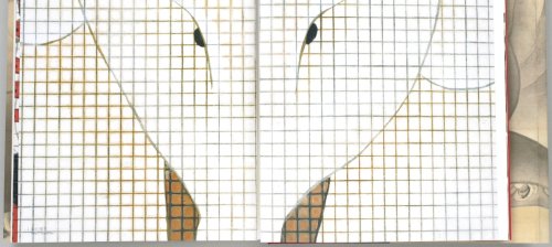 テレビや写真では気が付かなかったのですが、ひとつひとつの升目は少し凸状になっています。それほど絵の具を重ねたということ? 油絵なら簡単そうですが。それにしても、なぜこんなこんな書き方を。解説マシンの説明では西陣織の設計図として使う正絵(しょうえ)なのではと《 新日曜美術館 》と同じことを言ってました。